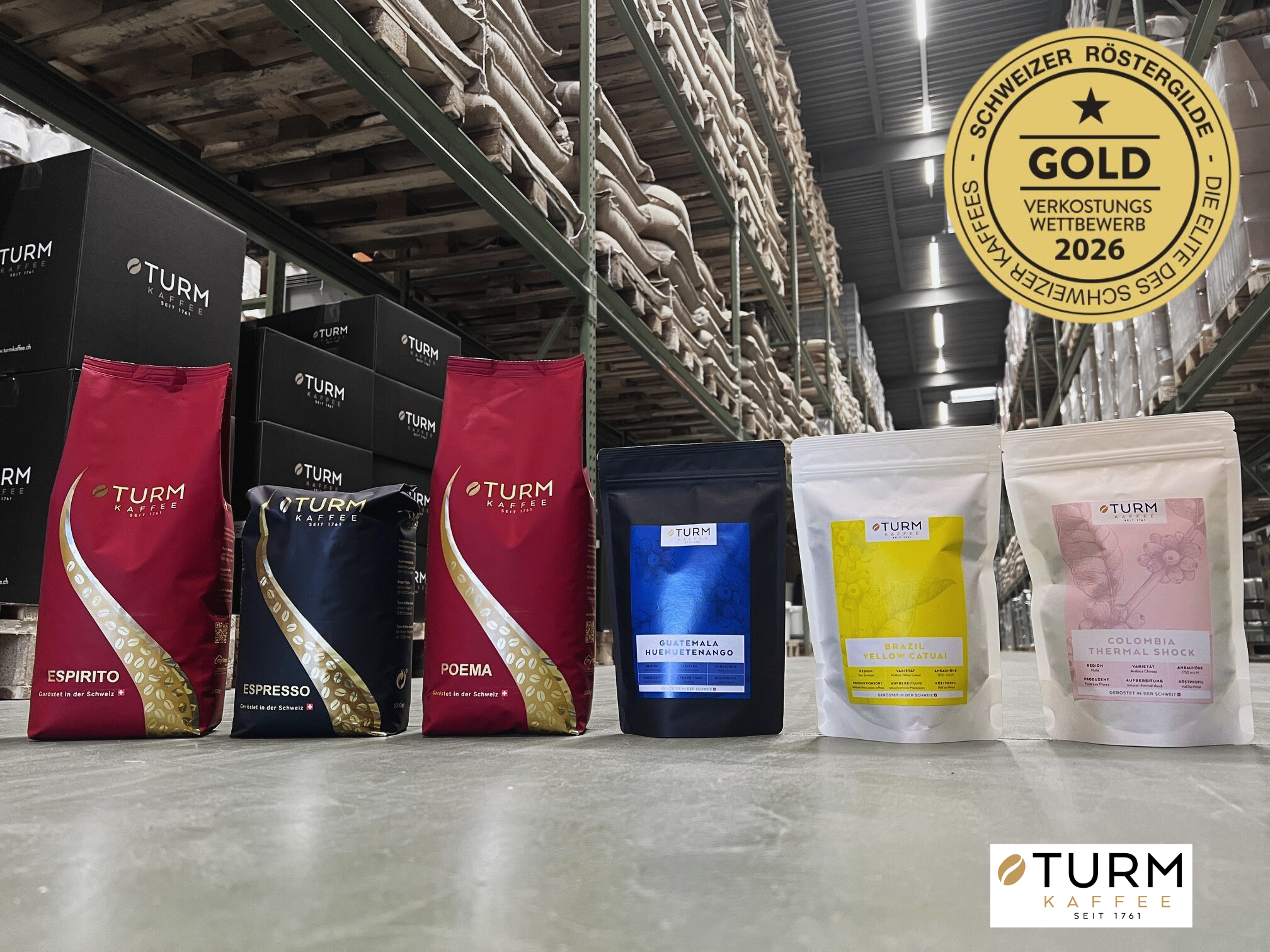 Goldmedaillen 2026 der Schweizer Röstergilde für Turm Kaffee
