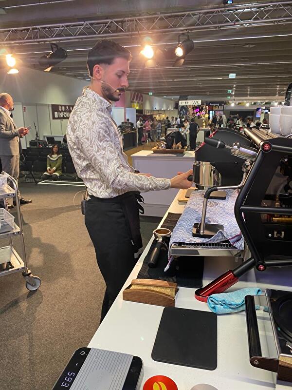 Claudio Petti hatte vor Ort die Aufgabe, der vierköpfigen Jury je einen Espresso, ein Milchgetränk und ein Original Signature-Getränk in einer 15-minütigen Vorführung mit Musik und nach anspruchsvollen Standards zuzubereiten. Offenbar gelang ihm dies vortrefflich, denn Claudio wurde mit einem vorzüglichen 2. Platz belohnt! Gratulation, Claudio!