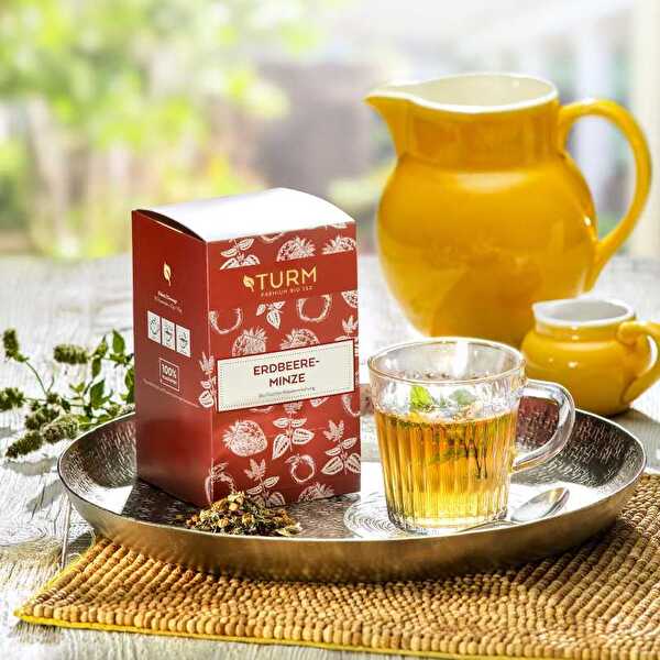 - 1 Pyramidenbeutel Turm Premium Bio Erdbeere-Minze Tee