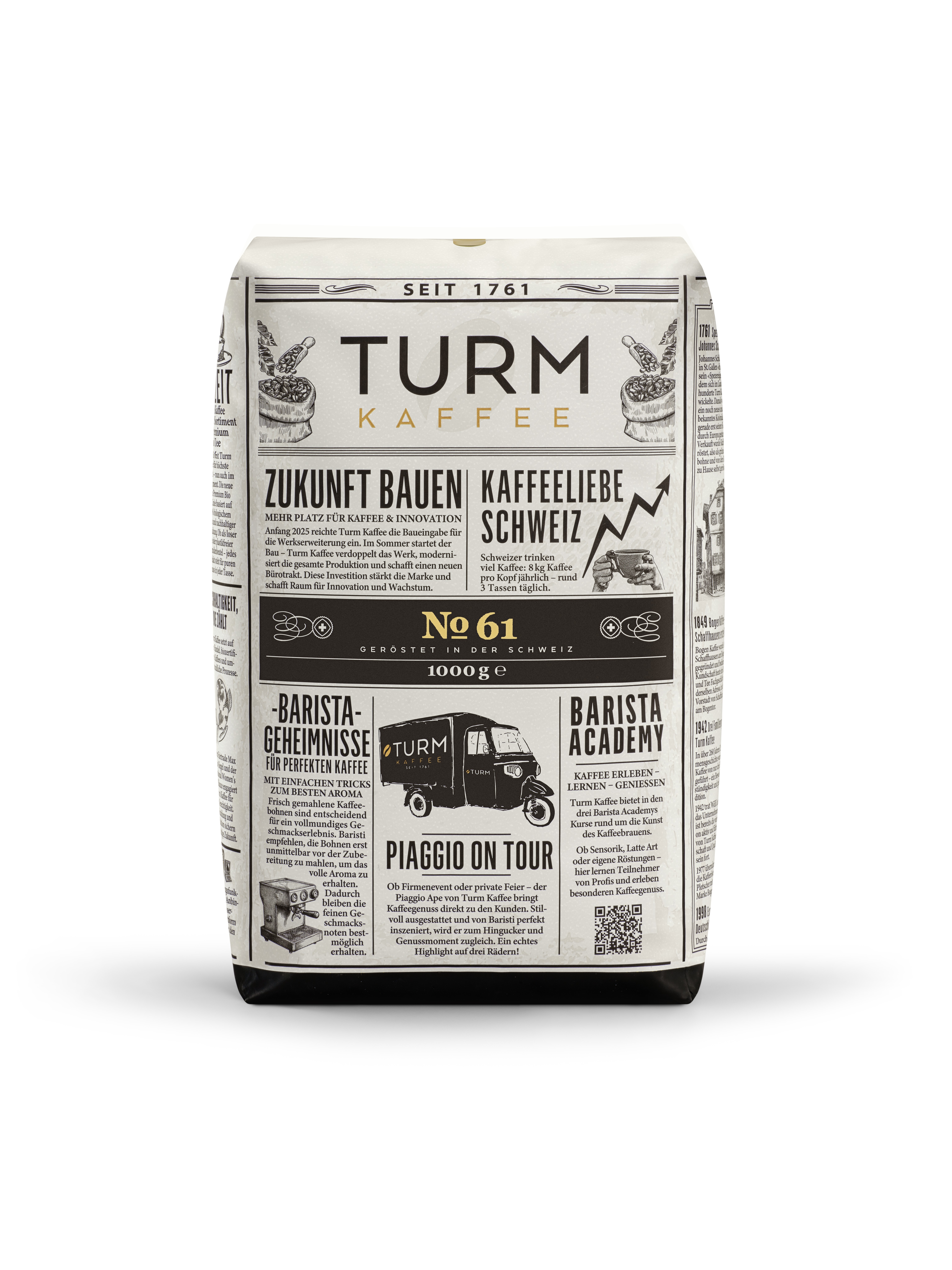 Mit grosser Freude stellen wir unsere neue Kaffeelinie Gazzetta vor mit den beiden Nummern No. 17 für den Kaffee und No. 61 für den Espresso. Diese beiden Mischungen verbinden über 260 Jahre Kaffeetradition mit einer modernen frischen Genusskultur - Turm Kaffee seit 1761!